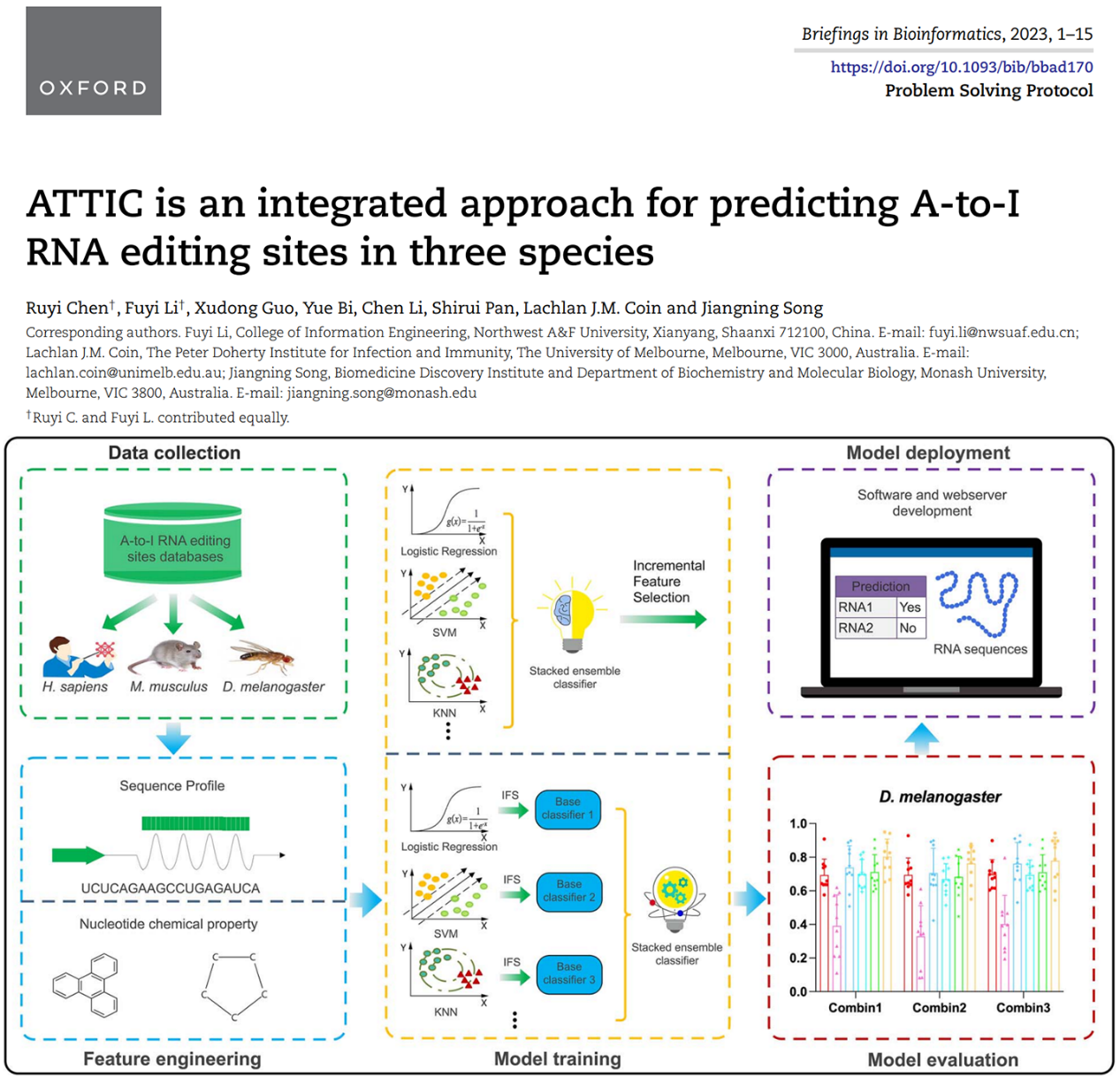近日,我院智能计算与农业信息系统学科团队李富义教授课题组在ray雷竞技官网入口G2类期刊《Briefings in Bioinformatics》(数学与计算生物学Top期刊,2022年影响因子为13.994)上发表题为“ATTIC is an integrated approach for predicting A-to-I RNA editing sites in three species”的最新研究成果。ray雷竞技官网入口信息工程学院为该论文第一作者单位,李富义教授为通信作者和共同第一作者,课题组助研陈如意(现博士就读于澳大利亚昆士兰大学)为论文共同第一作者。