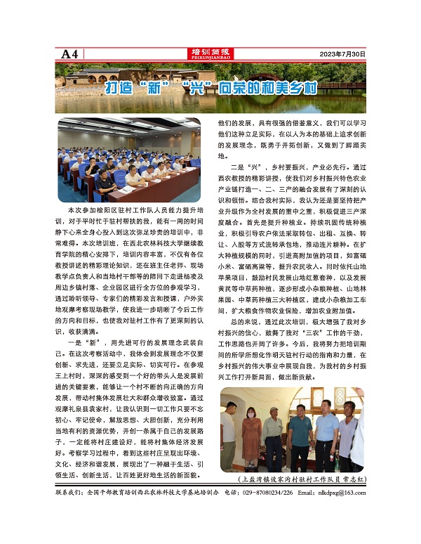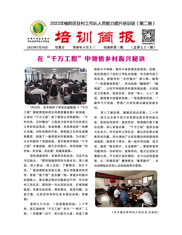 2023年榆阳区驻村工作队人员能力提升培训班(第二期)第三期简报