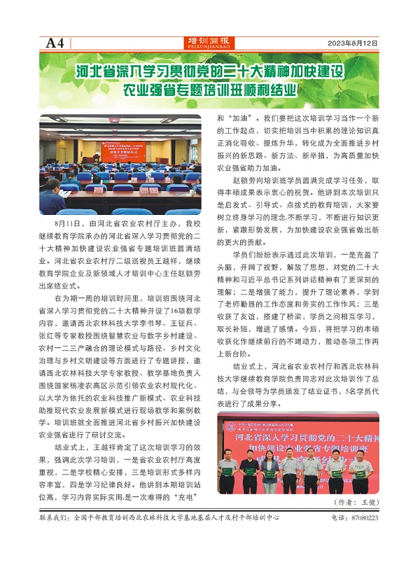河北省深入学习贯彻党的二十大精神加快建设农业强省培训班简报